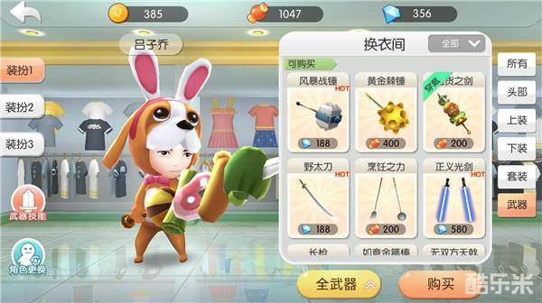 乍看起来好像没有什么不同寻常,直到你打开武器界面!我擦嘞,这是啥?大肉串是剑、棒棒糖是锤、勺子和锅铲是双刀、金刚钻是拳,还有符文魔剑,扫把,光剑这些耳熟能详的武器!制作组的脑洞太大堵不住啦~