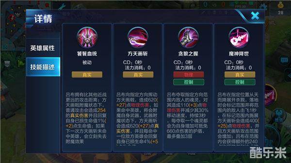 被动技能使吕布能够拥有无双的战斗力,真实伤害可以对敌人造成高额伤害。