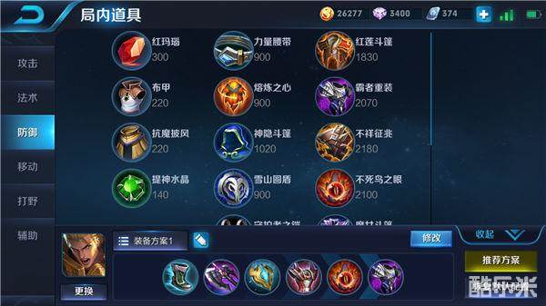 出装:抵抗之靴、暗影战斧、极寒风暴、反伤刺甲、不死鸟之眼、霸者重装