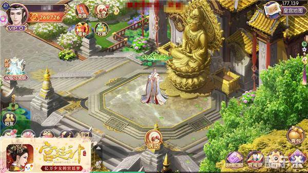 在《宫廷计》手游的后宫中的建筑多以优雅为主,慈宁宫作为太后凌若的居所,外观则怕偏向沉稳端庄,标准的皇室建筑风格,默默释放皇家威仪。作为上届后宫争斗最后的赢家,虽然宫殿外修葺得金碧辉煌,内里却充满佛心,在经历了后宫的风雨后,太后凌若依然保持一颗仁爱之心,在宫里也不忘记礼佛,小花园里有尊超大佛祖像,是太后最喜欢的,阳光不错的日子,在户外礼佛,感受来自天地的灵气,保持头脑清明,雨天可以待在内殿的佛堂里抄经,与莲花、锦鲤相伴,漫长的后宫生活也可以身心皆安宁。