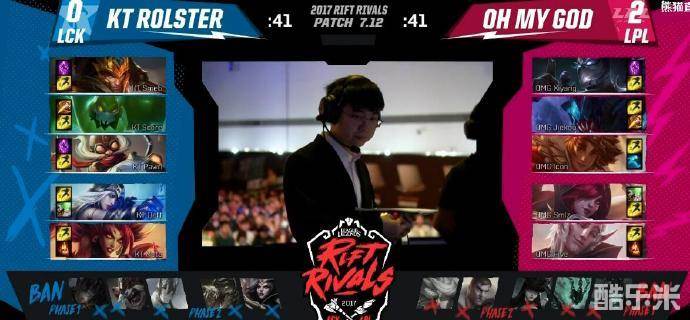 前期OMG洛霞配合拿下KT一血,但扎克的频繁GANK和线上强势的婕拉寒冰一直压制着OMG,岩雀在被动的局势中也根本无法发挥灵动的特性,KT全场压制最终战胜了OMG,扳回一城。