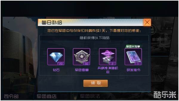 军团作为《现代海战》中一个重要的社交玩法,承载着玩家众多乐趣。玩家等级达到20级后方可开启军团功能,选择想加入的军团加入即可。当然如果想体验统领兄弟的乐趣,我们也可以自行创建军团,舰队等级达到25级即可。无论是加入军团或者是创建军团,每日可领取补给包,也可以向军团捐献金币或钻石。