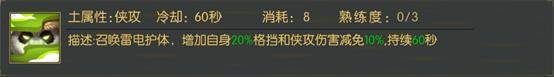 闪电甲增加自身格挡和侠攻减免,持续时间与冷却相同,在灵力充足是能全程保持buff存在。