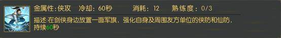 重整旗鼓是剑侠的光环型技能,一面旗子增强全队的防御60s,剑侠在组队时的地位大幅提升。