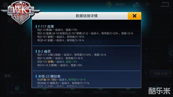 古有三十六计,今有数据连接加成,游戏除了通过策略布阵等方式获得胜利外,《血战长空》独创的战机数据连接加成却发挥着巨大作用。不同战机同上阵可触发不同数据连接,制导能和强度将获得不同的程度的加强,极其考验玩家对战机数据选择和分析。而各种新方式,都会随着我们部队的提升慢慢开发出来。