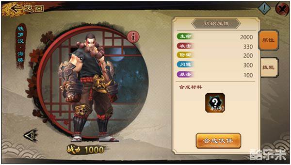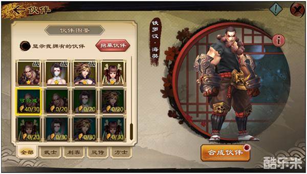 伙伴合成界面展示了此伙伴的属性信息和所需要的伙伴碎片数量。点击右下的“合成伙伴”后即可合成一个完成的可用伙伴。