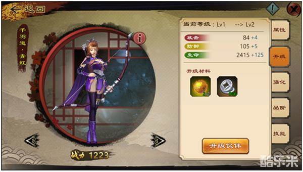 伙伴升级界面中左侧为所选中的伙伴。右部为锁选中的伙伴当前级别的等级和此等级增加属性,以及升级伙伴所需的材料。