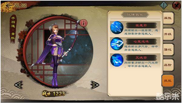 伙伴技能界面左侧为所选中伙伴的形象。右部为此伙伴拥有的技能展示。