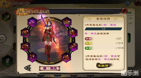 点击“等级套装”按钮可打开等级套装加成界面。装备部件达到不同的等级会激活相应的套装效果,达到激活套装属性的条件后,套装属性自动激活。