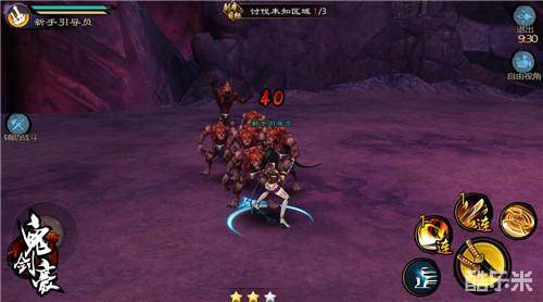 最简单的一关,等怪物自动聚到一起攻击灵灯的时候,使用【流光飞刃】再补两下普通攻击即可。