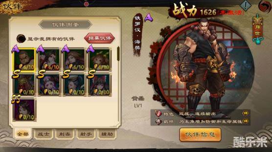 这个是伙伴功能的界面,可以看到分有A、S、SS三种品阶的伙伴。