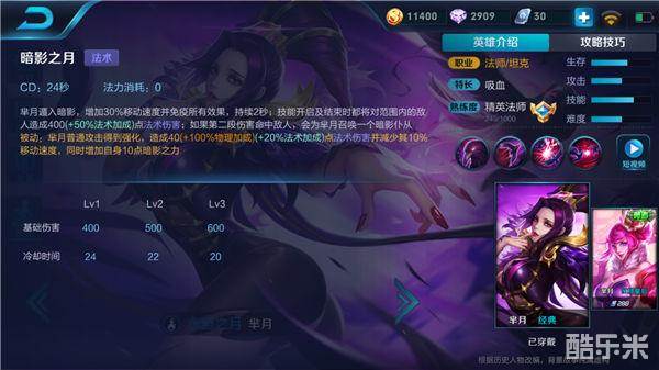 解析:开启后进入无敌状态,免疫所有负面效果,而且在开始和结束时可以造成两段伤害,并增加移速,这让她在战场上既能利用该技能保命,又能在敌军残血时用来突进收割,十分灵活;而且芈月在普攻时可以造成法术伤害和减速效果,又能维持被动的暗影仆从,让她的持续作战能力更强。
