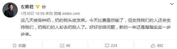 赛后左雾更新微博,却说蛇队输了,怎么回事呢?