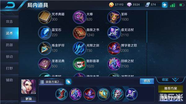 【极寒风暴】:中期的另一件核心装备是极寒风暴,因为它不只能有效防止被秒,也能增加极高的冷却缩减,让她可以频繁的消耗敌人。