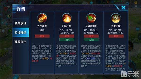 实战小技巧:鲁班七号的生存能力较差,不论是前期对线还是中后期团战都应该谨慎走位,站在我方坦克后面猥琐输出,不要贸然突进,不然很容易被敌方刺客切入,无法发挥到自身的实际优势。