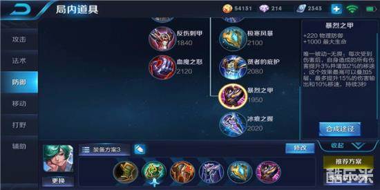 最后一件装备选择暴烈之甲,前面的五连装备让庄周的属性全方位的提升,暴烈之甲的选择主要是增加庄周匮乏的输出能力,装备的被动提供的加速让庄周在团战中更加的游刃有余。