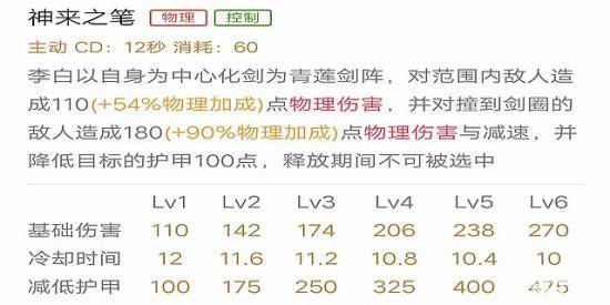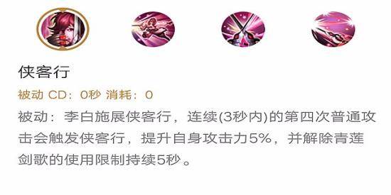 技能介绍:此技能帮助李白在前期打野时拥有更高的伤害,能帮助李白快速清理野怪,并且在四级后可以解锁大招,使用大招的同时也能得到攻击加成,提高自身的物理输出。