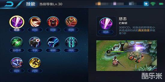 技能介绍:利用被动技能解锁大招后才可使用大招,利用大招的五次高额伤害能在前期对敌方线上英雄的发育造成干扰,先在野怪身上解锁大招,利用一技能位移到敌方身边使用大招进行攻击,再使用一技能回到原地,这样可以极大程度的限制敌方线上英雄的发育。