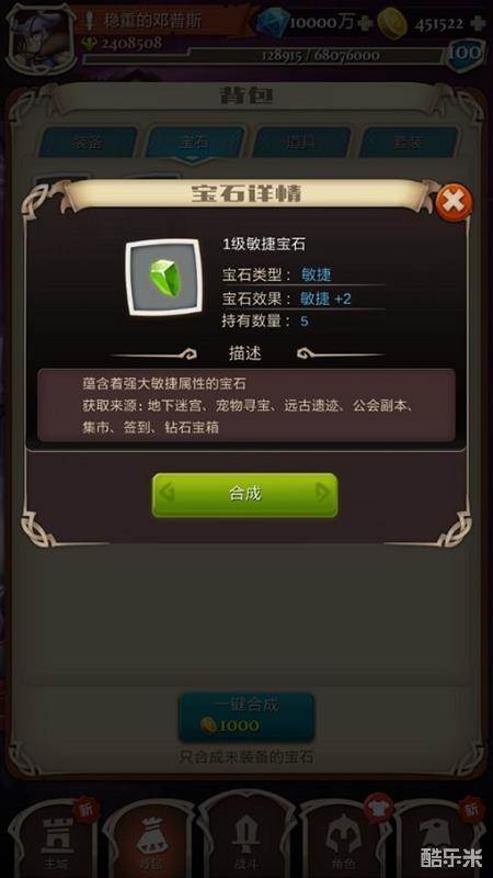 多个低等级宝石可以合成一个高等级宝石。宝石合成后属性也会获得提高。