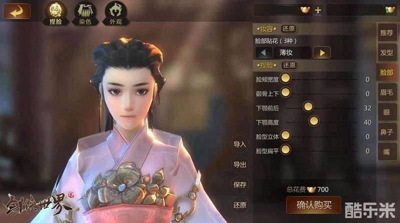 在外观功能中有个选项为“捏脸”,这就是能让侠士千人千面的神秘功能。该功能在侠士建立角色的时候也曾见过,进入江湖后对自身面容不满意的话可在此进行调整。高手在民间,有爱玩家千丝、允诺为诸位示范了江湖美人是如何修炼而成的。
