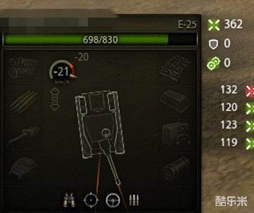 E-25的倒车速度较慢。被点亮之后再后撤规避的话会有些来不及。撤离战场的话,掉头逃跑比倒车逃跑要更有效一些。