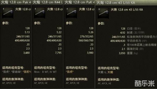 几门常见的D系128主炮的横向对比(TD用)