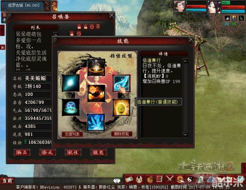 ⒋探究召唤兽加SP技能是否受到坐骑管制影响: