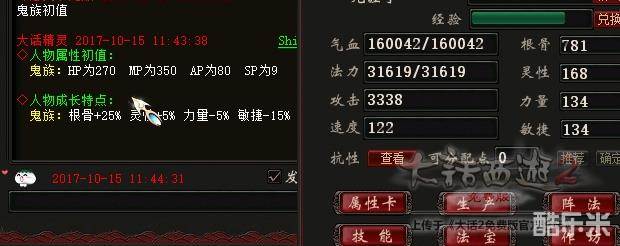 鬼族速度计算:(初值*鬼族成长+敏捷*鬼族成长+装备速度值)*(1+转身修正+帮派速度加成)+(1+变身卡原始修正*变身卡修正程度)=速度。
