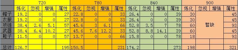 图中炼化数值都是最高属性,举例来说,780的项链五条炼化中,出现理论中最有数值是克45.6点(该数值可以是单一属性,或者两条相加)增加某一条四维属性(根骨,力量,敏捷,灵性其中一种)三个炼化都叠加且最高值,即22+22+22=66点。另外,仙器的武器,仙器大力项链,阵法,翅膀炼化,装备点化,套装玉符的炼化和玄冥中均可以增加。