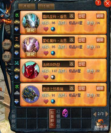 按钮就可以打开下图的幻兽列表面板。在列表中可以看到各只幻兽的基本资料。