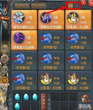 而原先的“列表模式”也可正常使用,玩家可以通过幻兽界面右上方的按钮,在“列表模式”、“多幻兽模式”中自由切换。