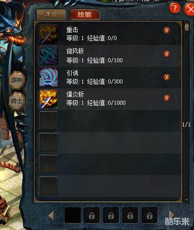 经验值:当可升级的技能经验值蓄满时便可提升一级。