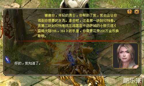 天下没有免费的午餐,你自然也知道这个道理。为了让陪伴着你征战一生的幻兽得以飞升,你毫不犹豫的用200万金币换取了第二块封印残卷。