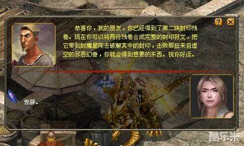 现在你已经将两块封印残卷集齐,将它们合成,就能得到完整的封印符文。
