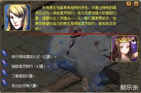 而在此之前创建的角色,可前往卡诺萨城(326,502)格蕾琳娜处选择一只本职业原生宠进行缔结魂契仪式,转化为魂契幻兽。
