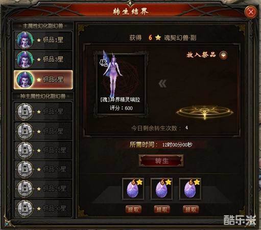 “转生结界”是魂契幻兽副宠的专属产出地。通过献祭10星以下非赠幻兽或魂兽精魄,可源源不断地生成幻化魂契幻兽所需的各星级副宠,入口位于幻兽列表左侧