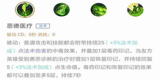 整体分析:扁鹊的核心技能,普攻与技能会使敌人中毒并叠加毒药印记,造成持续的伤害。触碰到二技能的友军英雄叠加恢复印记,造成持续的生命恢复。两种印记最高叠加五层。扁鹊的输出很大一部分是被动提供的。