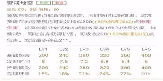 二技能是黄忠的辅助性技能,既可以增加黄忠的输出,也可以提升黄忠的生存能力。在对线时地雷一般埋放在兵线附近,让敌方英雄不敢上前清线;也可以将地雷埋放在下路的草丛中,在敌方打野英雄前来抓人时提前预警;开启大招后可以将地雷埋放在自己的脚下,增强自己的生存能力。