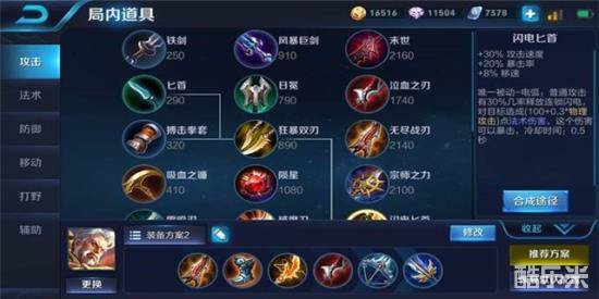 闪电匕首是攻速装中性价比最高的一件,虽然没有攻击力加成,但被动的连锁闪电同时提升了他的爆发和范围输出能力,出完闪电匕首的黄忠伤害已经非常可观了。