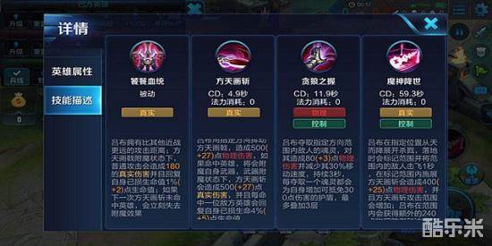 吕布的普攻在附魔状态下会转化为真实伤害(真实伤害无视护甲和护盾),并且有回复效果。这让吕布有着天然的输出优势和不错的坦度。即使面对敌方坦克,吕布也能轻松打出高额伤害。