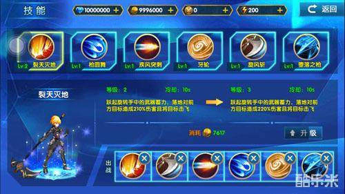 技能3-疾风突刺:连续冲锋两次,攻击力提升对目标造成伤害且附带减速效果,持续5s。通过开启战魂沧海中的格子获得。