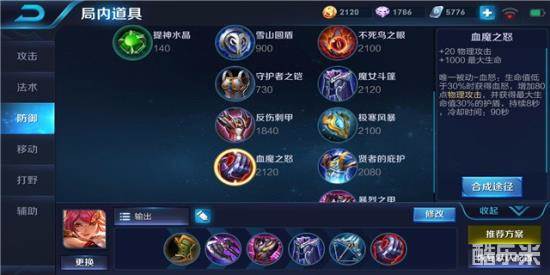 血魔之怒:增加了物理攻击和最大生命,装备被动是生命值低于30%时获得血怒,增加80点物理攻击,并获得最大生命值30%的护盾,持续8秒,效果有90秒CD,这件装备能够让花木兰残血时候能够逃生,如果技能刚好冷却还可以进行反杀。