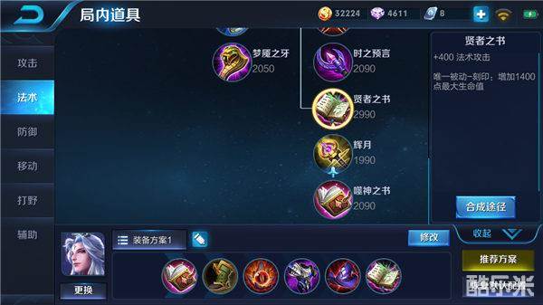 贤者之书增加的高额法术攻击让明世隐的伤害变得极为恐怖,一个大招就可以重创敌方脆皮英雄,而且被动效果也为明世隐带来了极高的最大生命提升。