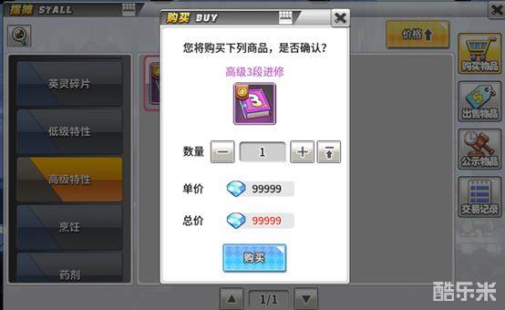 点击游戏主界面中的“摆摊”按钮打开界面,我要购买按钮显示购买界面(点击摆摊页签后默认显示购买界面)