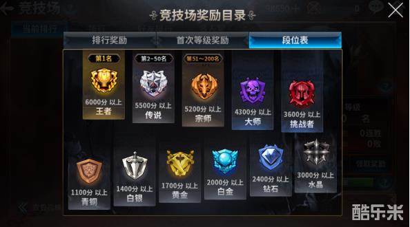 竞技场共分为11个段位。