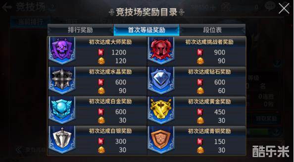 - 奖励目录:可以查看排行奖励,首次段位达成奖励,段位表