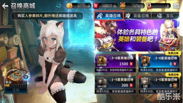 - 可以消耗红钻,荣誉购买英雄召唤。