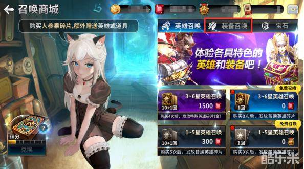 - 召唤装备也可使用英雄召唤券进行召唤,召唤1回需要消耗1张装备召唤券。
