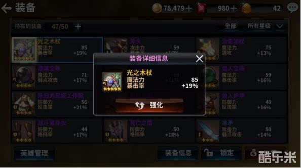 装备能够让英雄得到强大的属性加成,目前英雄配置了三个装备栏,分别可以装备武器、防具丶饰品(当前版本中只有武器与防具)。玩家们可以点击主界面的英雄按钮进入英雄操作界面,只需要点击某一个英雄就可以为该英雄进行相关的装备操作,同时也可以查看已有的全部装备。