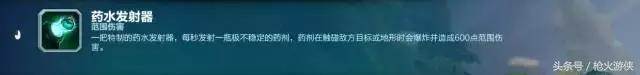 描 述:一把特制的药水发射器,每秒发射一瓶极不稳定的药剂,药剂在触碰到敌方目标或者地形时都会爆炸并造成600点范围伤害